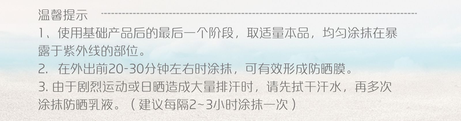 質(zhì)地輕盈、水潤(rùn)保濕,不易泛白,自然清透,高倍防曬。