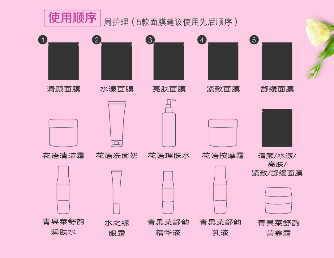每日變化不同的面膜,循序漸進(jìn)改善肌膚不理想。