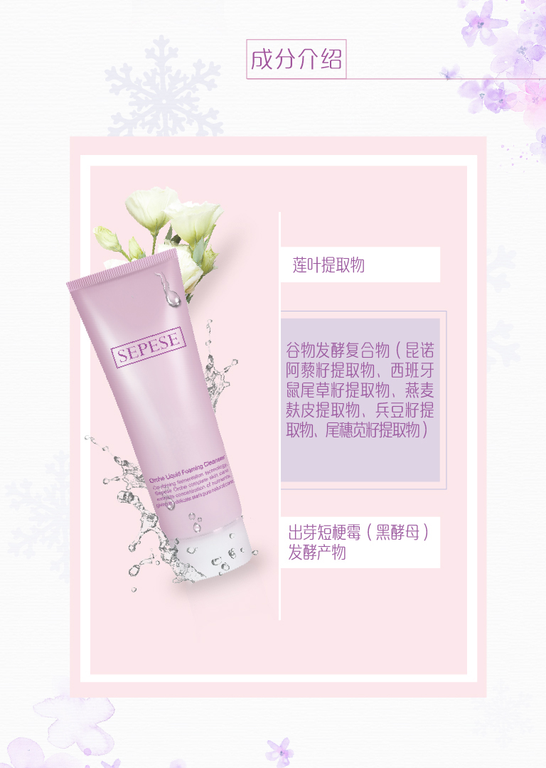 溫和的清除皮膚表面的代謝物,賦予肌膚豐富的水潤感和彈力,使肌膚更加干凈透明。