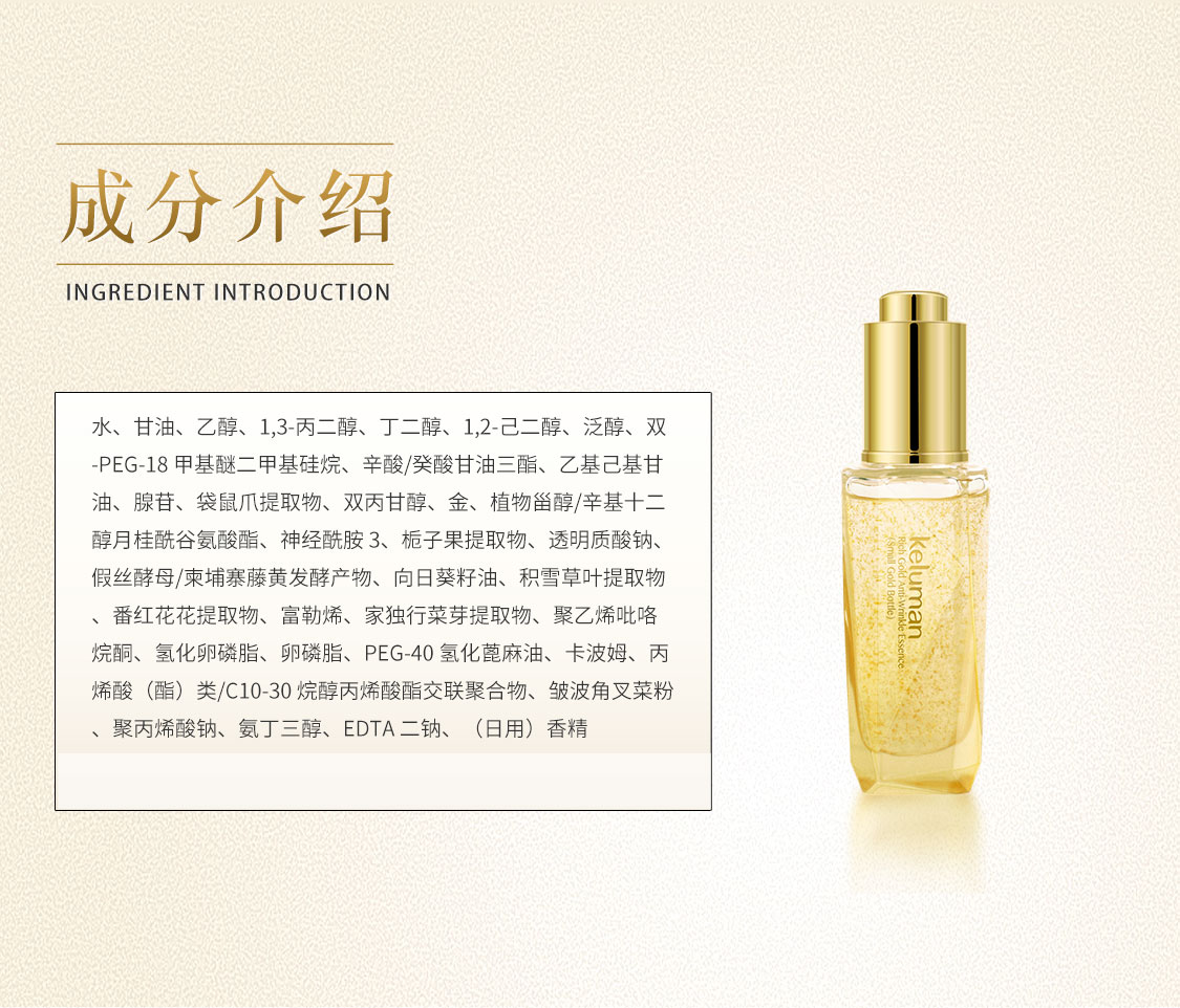 內含可視金箔,質地晶瑩亮澤 黃金顆粒,加速營養傳導 滋養肌膚,緊致煥變