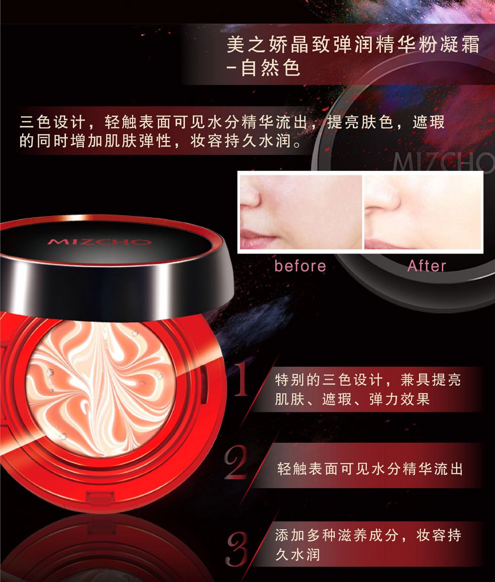 三色設計,輕觸表面可見水分精華流出,提亮膚色,遮瑕的同時增加肌膚彈性,妝容長效水潤。
