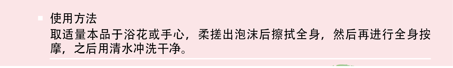 溫和清潔身體肌膚老化角質和污垢,沐浴后肌膚水嫩潤澤。