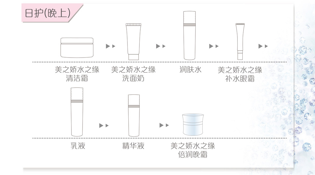 由日霜和晚霜構成,日夜區(qū)分護理,效果加乘;早晚持續(xù)水潤呵護,令肌膚倍加水感潤澤。