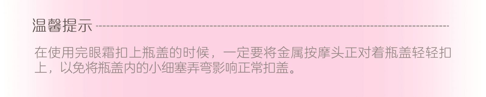 通過金屬頭按摩,促進眼周肌膚吸收營養成分,微涼的觸感,能夠舒緩安撫眼周肌膚,同時淡化細紋。