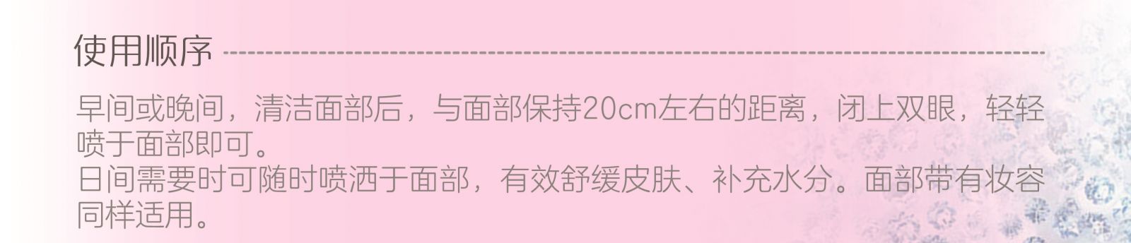 出霧更細(xì)膩、綿密、輕盈,可均勻覆蓋每寸肌膚;隨時隨地補(bǔ)充肌膚水分,滿足妝前&妝后的多重需求。