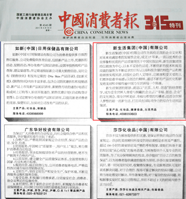 名優(yōu)企業(yè)誠信承諾2011年”3.15”承諾公告,《中國消費(fèi)者報(bào)》3月14日中國3.15年度報(bào)告專版