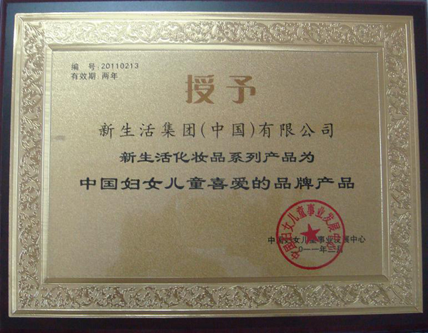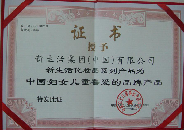 近日,新生活集團收獲了一份沉甸甸的喜報:在3.8國際勞動婦女節100周年之際,新生活化妝品系列產品被中國婦女兒童事業發展中心授予 “中國婦女兒童喜愛的品牌產品”榮譽稱號。該榮譽稱號已在“中國婦女兒童事業發展中心的官方網站”進行公告并將在4月份的“新華網”網站上進行榮譽公告。同時,新生活集團企業形象將于3月末刊登在《中國名優婦女兒童用品采購》 畫冊中,成為全國婦聯組織各項活動采購的重要依據。