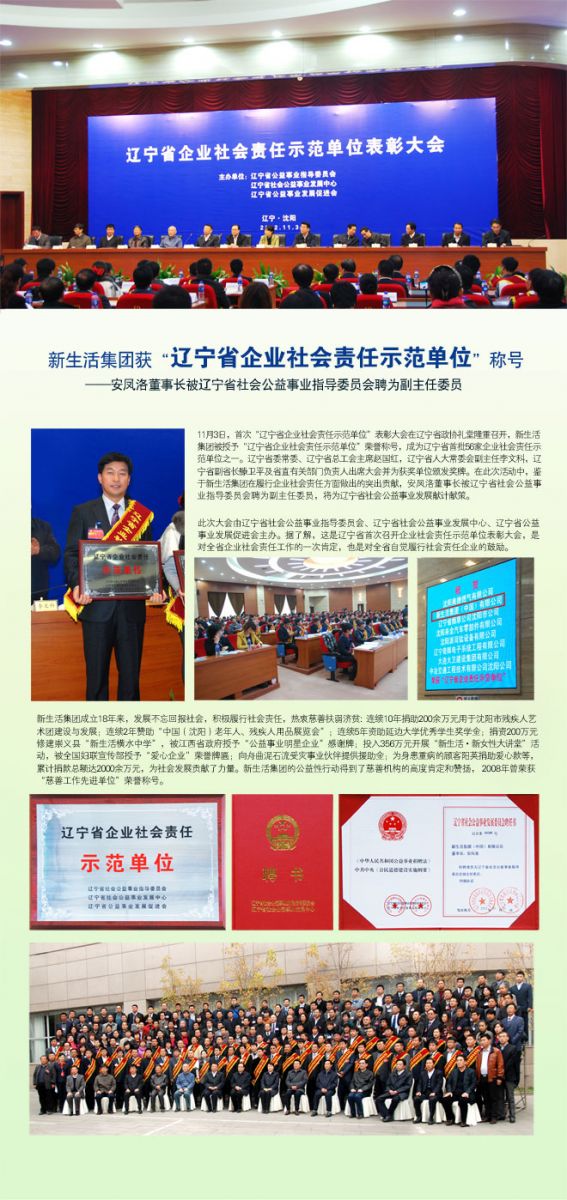 新生活集團獲“遼寧省企業社會責任示范單位”稱號