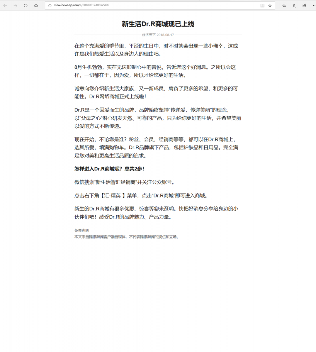 (網絡媒體)新生活Dr.R商城現已上線