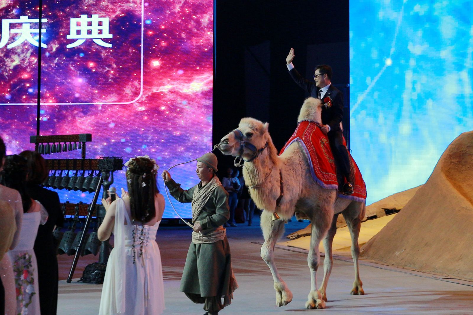 在慶典的最后,演繹了深受觀眾喜愛的《駝鈴傳奇》秀,《駝鈴傳奇》將富有創意的科技手段與燦爛的絲路文化相融合隨著跌宕起伏的情節,我們乘坐在會跑的觀眾席,穿越時空,回到千年前大唐時期的絲路古道。給我們帶來了超凡的視覺體驗和心靈震撼,以正能量傳播西安最輝煌歷史時期的文化傳奇。