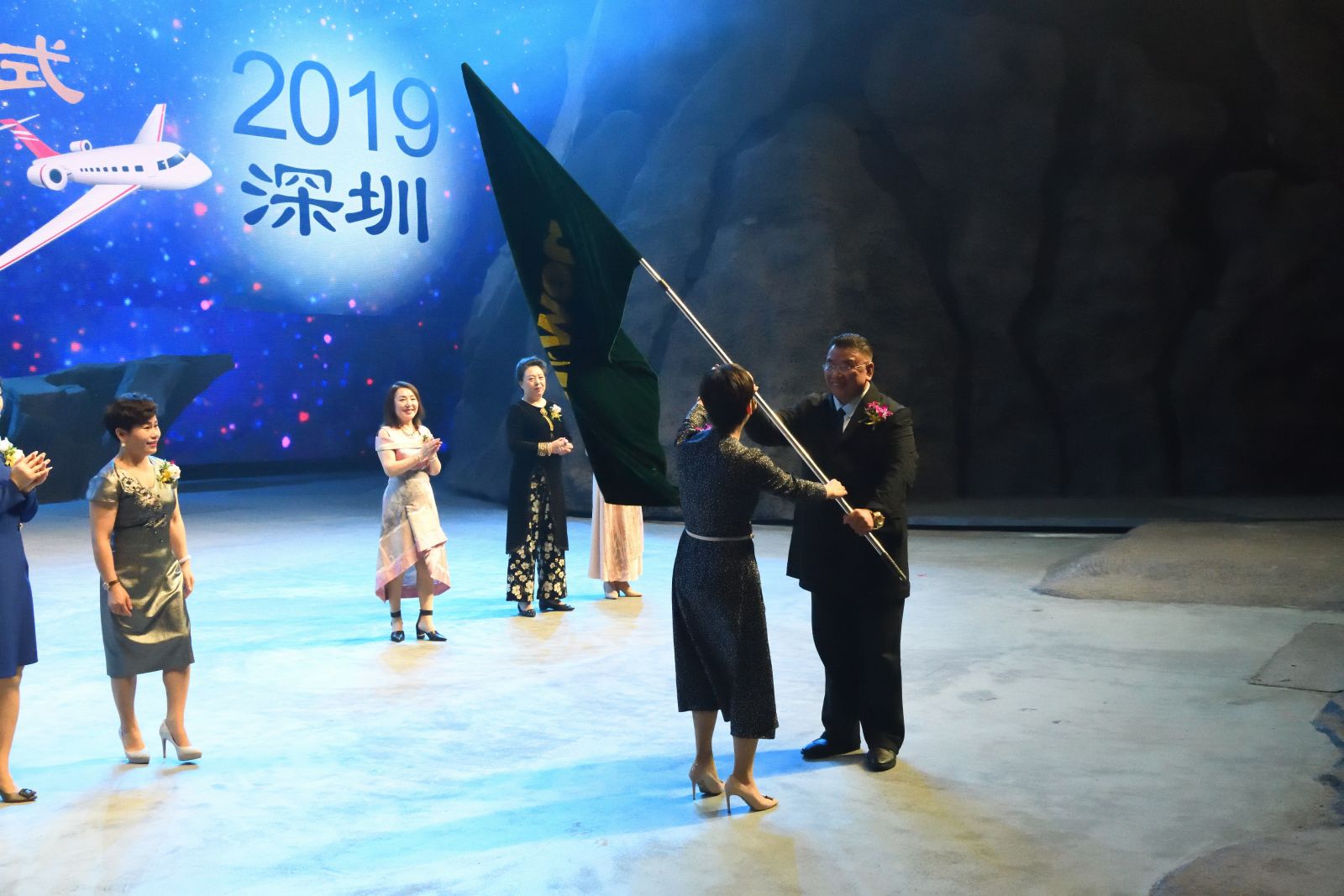 此刻,我們迎來了激動人心的2019年周年慶典會場交接儀式,趙彤總經理親手將慶典舉辦旗遞交給劉秀峰總經理,這一幕讓現在的姐妹們再一次激動不已,明年的慶典將在中國第一個經濟特區—深圳舉辦,讓我們期待明年在深圳,大家再相聚。