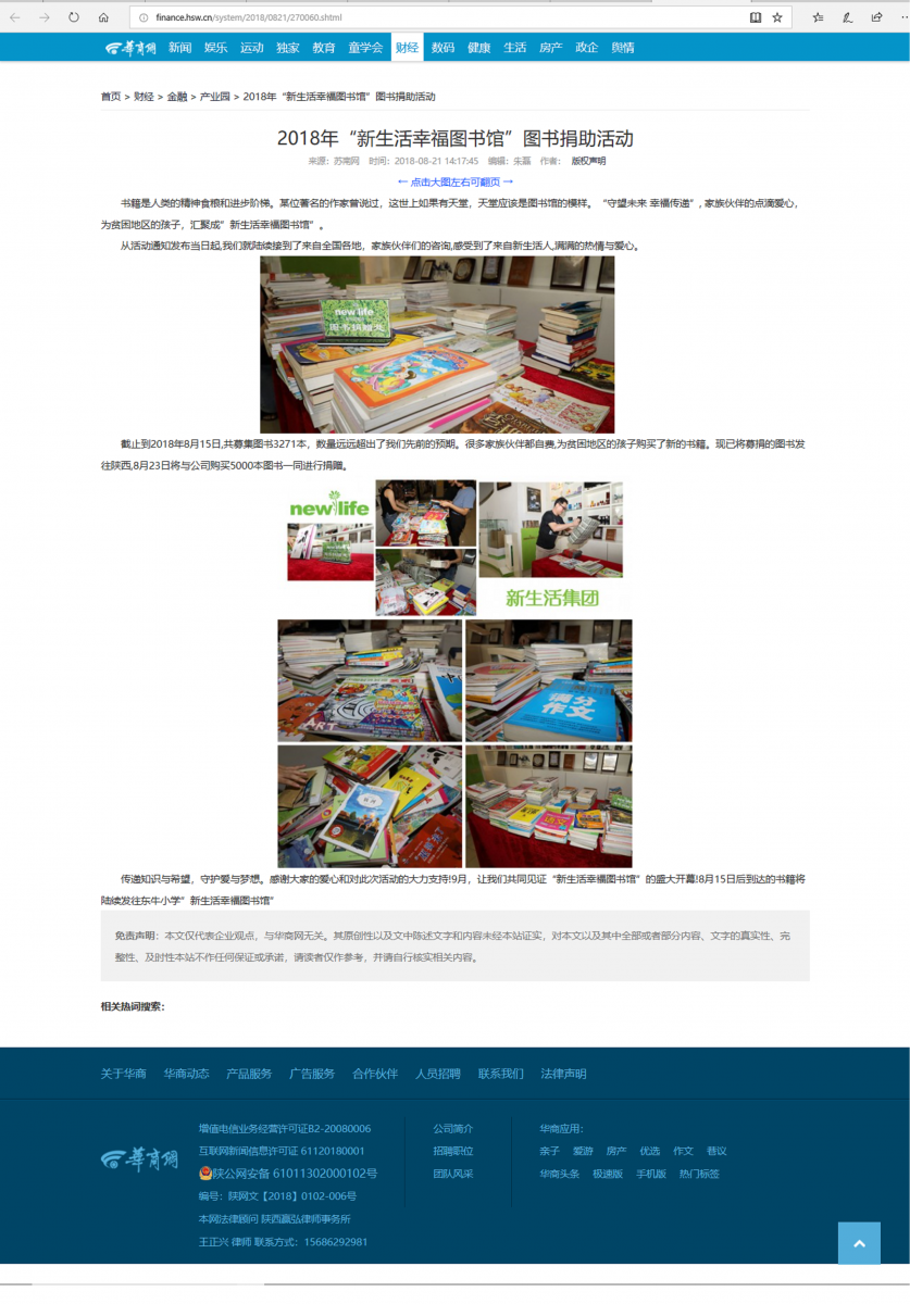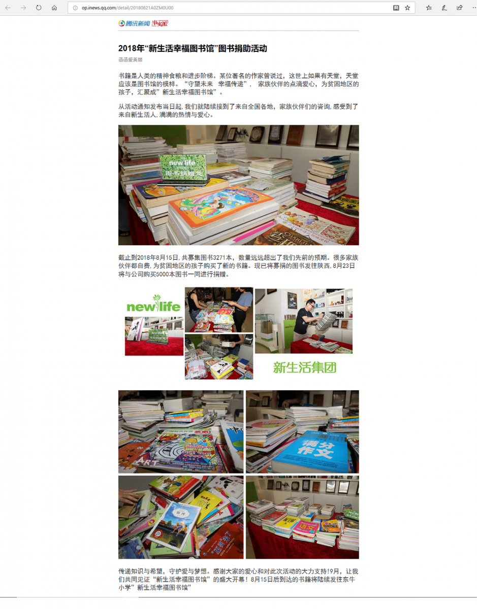 (網絡媒體)2018年“新生活幸福圖書館”圖書捐助活動