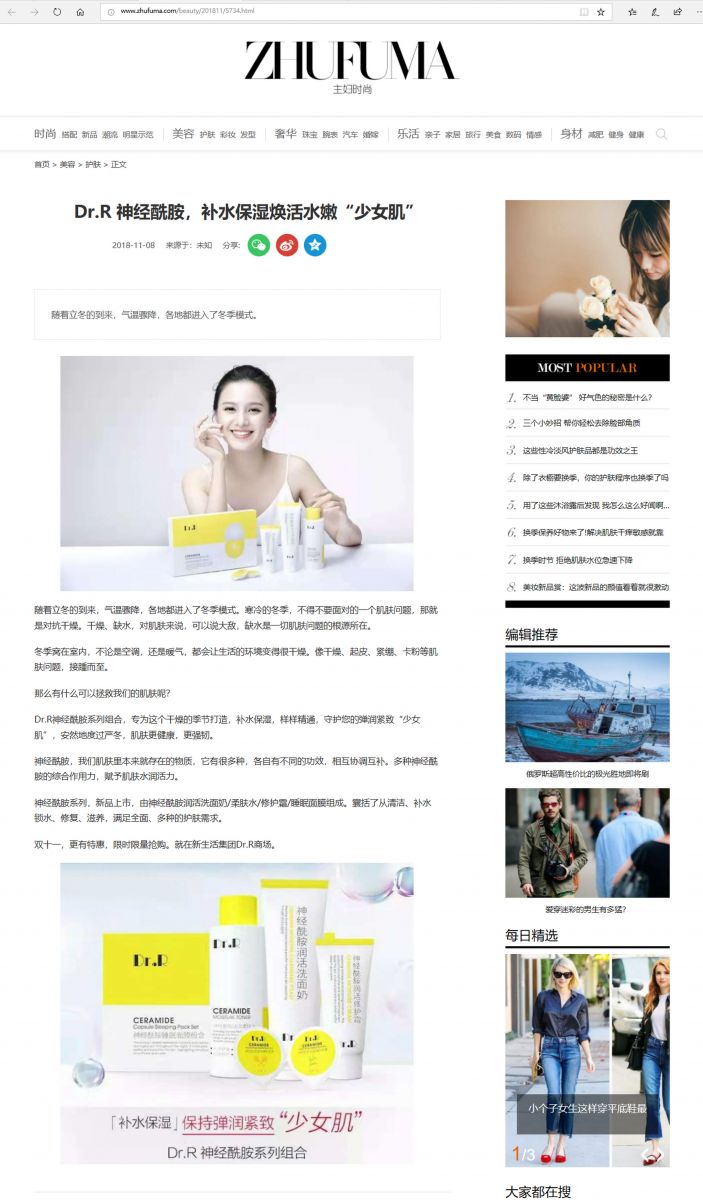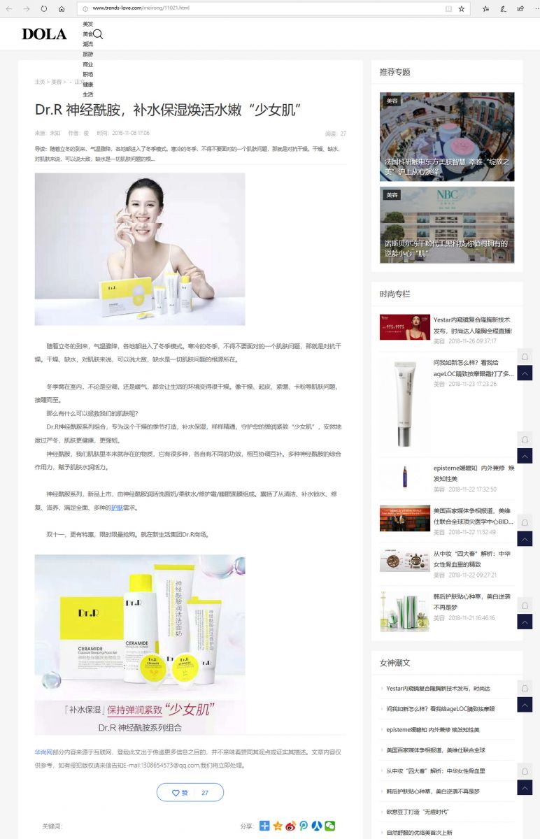 (網絡媒體)Dr.R 神經酰胺,補水保濕煥活水嫩“少女肌”