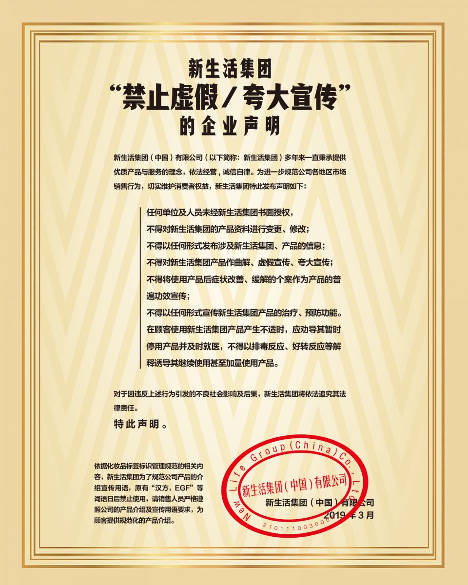 新生活集團“禁止虛假/夸大宣傳”的企業聲明