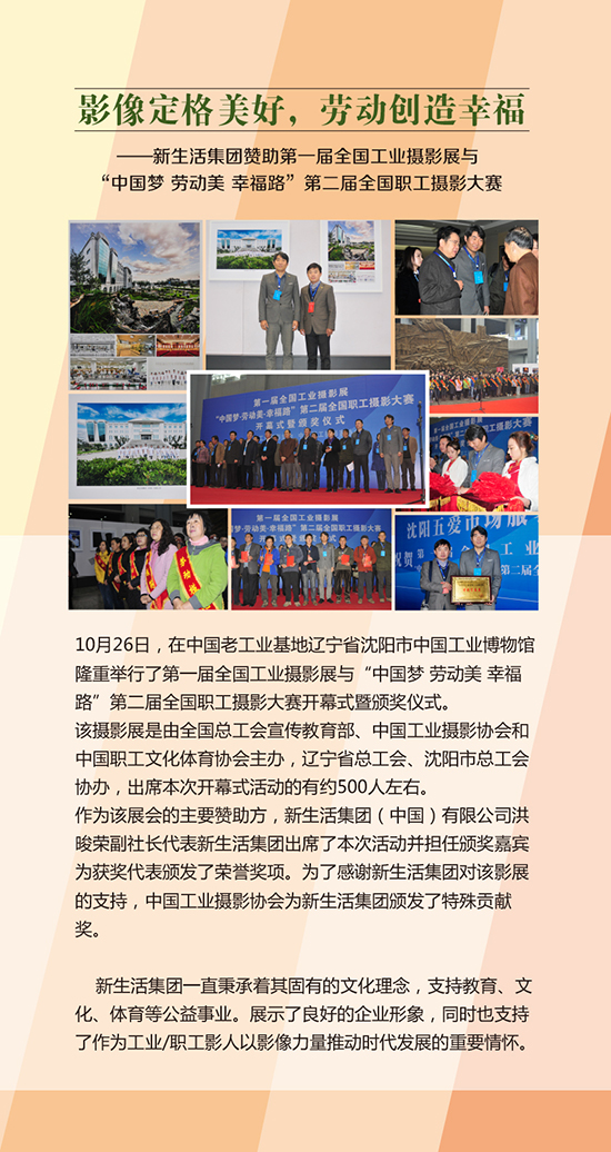 影像定格美好,勞動創造幸福 ——新生活集團贊助第一屆全國工業攝影展與“中國夢 勞動美 幸福路”第二屆全國職工攝影大賽