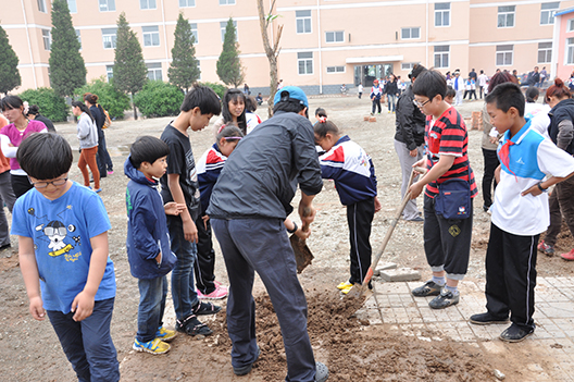 “零錢的希望”活動(dòng)機(jī)構(gòu)志愿者與貧困學(xué)生一同植樹(shù)