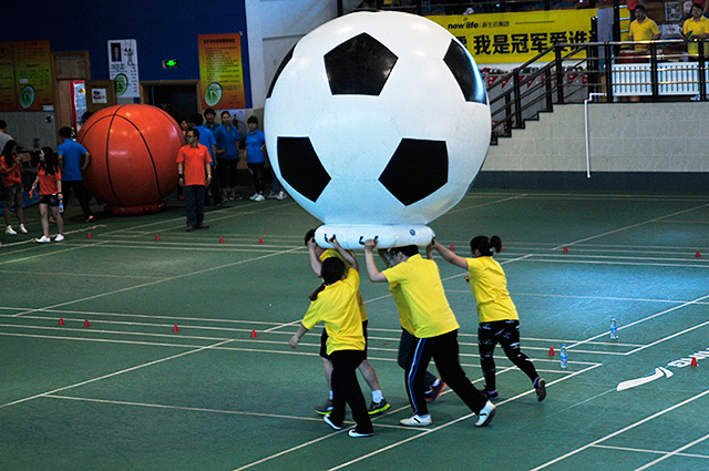 運動會的內容豐富多彩:動感五環(huán)、財源滾滾、組合障礙接力、運轉乾坤、蒙眼敲鼓、腳夾球接力、跳大繩比賽、羽毛球比賽、花樣踢毽比賽、趣味接力、心有靈犀一點通。每個比賽項目都要求各個隊員之間有很默契的配合,有些比賽項目也要求隊員突破自身的弱點。,為自己找到自信。