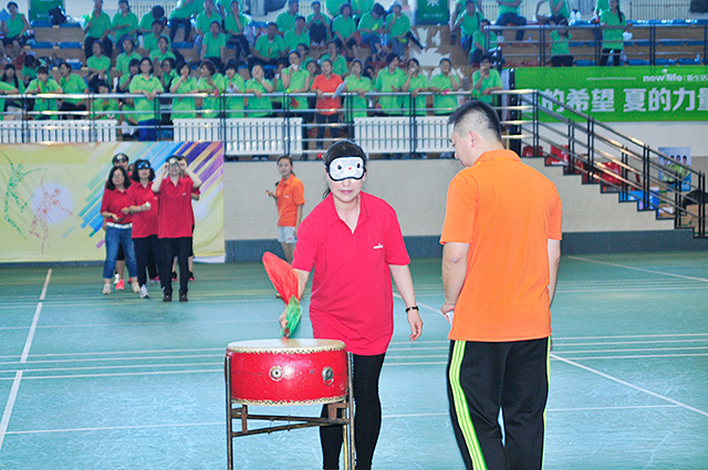多人跳大繩比賽不僅需要一起跳繩的人保持統(tǒng)一的節(jié)奏更是對搖繩人體力的考驗。由最初練習時每個隊伍最多只能跳幾個到最后跳十幾個,在這個過程中也是大家將心彼此靠攏的過程。最終霹靂隊和冠軍隊僅以一跳只差,分獲一二名。在蒙眼接力中,被蒙眼睛的隊員們小心翼翼的走到鼓前擊鼓,更有隊員走偏場地,讓場外觀眾笑聲不斷。“心有靈犀一點通”讓人們不禁佩服比賽人之間的默契和睿智。隊員們團結一致、默契配合的精神也是新生活集團壯大發(fā)展的保障之一。如果說在運動場上拼搏的運動員是閃亮明星,擁有著耀眼的光芒,那么在臺下辛勤付出的志愿者、裁判和攝影師們就是遼闊的天空,讓這一切光芒擁有綻放的地方。