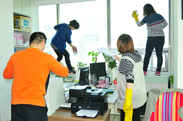 集團(tuán)本部的各部門員工積極清掃自己的辦公室,使辦公環(huán)境煥然一新。并將無(wú)用的文件整理出作為二次用紙使用,這在很大程度上避免了紙張的浪費(fèi)情況。部分員工在辦公室和衛(wèi)生間張貼了環(huán)保標(biāo)識(shí)貼,提醒大家節(jié)約水資源、減少一次性用紙使用、盡量避免文件打印,倡導(dǎo)低碳辦公。同時(shí)禁用一次性水杯,減少城市的白色污染。