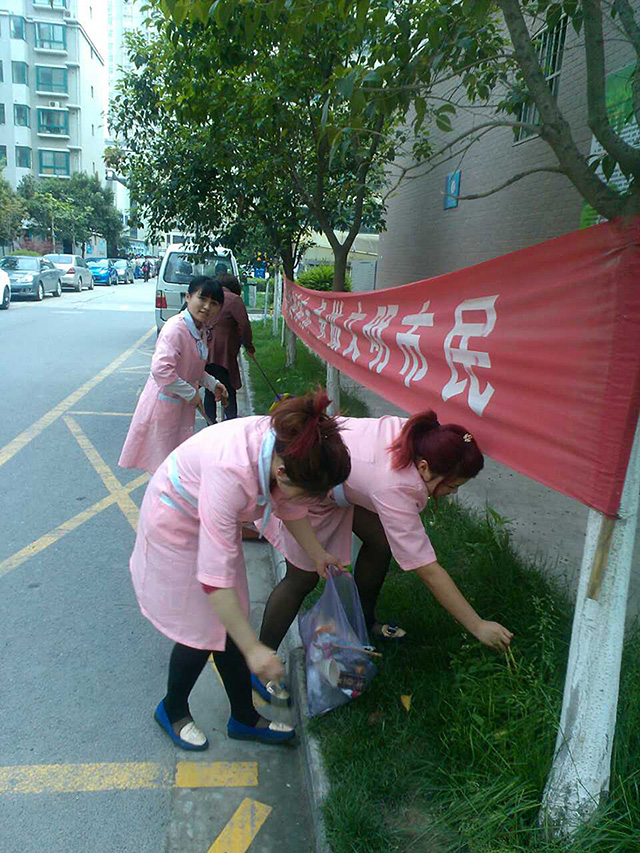 分公司在清掃完公司內(nèi)部衛(wèi)生之后都紛紛走到了公司附近的環(huán)城公園撿拾垃圾。分散在全市的經(jīng)銷商也組織人員統(tǒng)一著裝在門店附近打掃公共衛(wèi)生。攜帶垃圾袋和火鉗到環(huán)城公園撿拾垃圾的同事們,彎腰撿起一個(gè)又一個(gè)桌凳邊、草叢中、運(yùn)動(dòng)器材旁的廢紙、煙頭、塑料袋。公園里的老人、孩子們向他們行注目禮,還有些老人豎起了大拇指夸獎(jiǎng)他們。