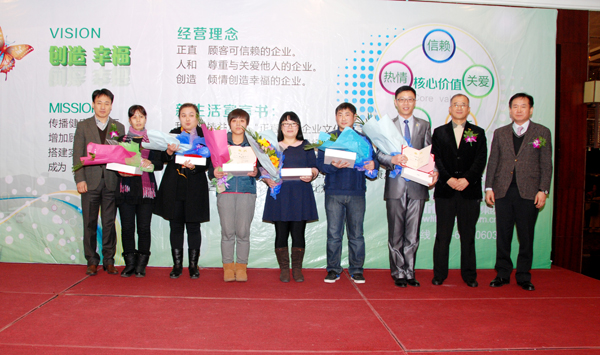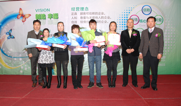 在過去一年里,公司的業績突飛猛進,取得了飛速的發展這些都離不開公司全體成員的耕耘和付出。公司領導為優秀員工頒發了“模范員工獎”和“特殊貢獻獎”。其中安鳳洛董事長為營銷戰略部李京奎理事頒發了“年度最大成就獎”,公司全體員工也為獲獎的優秀員工獻上了最真誠的祝賀和最熱烈的掌聲。