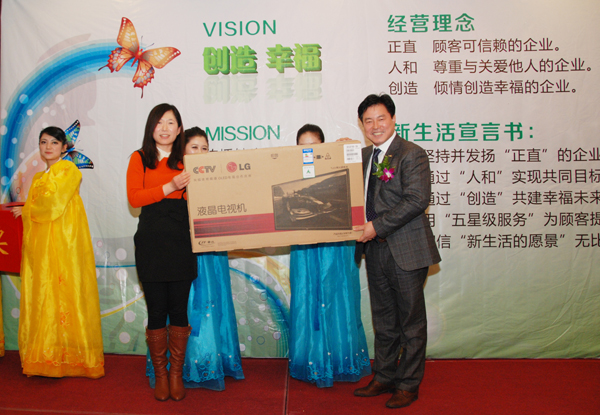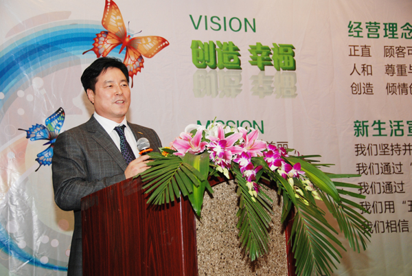 年會伊始安鳳洛董事長發表致辭并表示,2013年絕非是平常的一年,在大家一年的努力中超額完成任務,圓滿的達成了年初定下的目標這和大家的努力密不可分并為大家感到自豪。在這一年同樣令人興奮的是傾注了董事長全部心血建造并被專家評為亞洲一流工廠的上海工廠的建立。在年會上安鳳洛董事長發布了新生活集團2014年集團VISION ,這是新生活集團的新篇章,希望大家在未來的工作中也有所創新和突破。在二十年前,安鳳洛董事長懷揣著一個夢想打造了新生活集團,二十年后夢想不斷實現并壯大著。回顧新生活集團二十年的發展,每一年都有不同的經歷和考驗,安鳳洛董事長強調2014年同樣需要大家更多的努力同時更需要大家自我的改變,在工作中尋求創新,在創新中實現發展和突破。