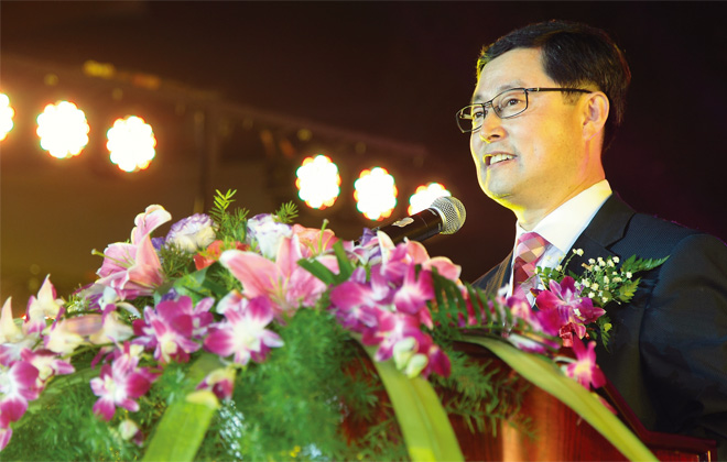 在歡聚慶祝的日子里,節(jié)目表演是最可以表達(dá)內(nèi)心祝福的方式。慶典中節(jié)目表演也將慶典氛圍一次又一次的推向高潮。除了邀請到韓國專業(yè)的舞蹈團(tuán)體以外,其余的都是各個地區(qū)自己精心準(zhǔn)備的自編自導(dǎo)的節(jié)目。那動如脫兔的俊俏舞姿、飄灑絢爛的各色裙擺、行云流水的陣形變換,與如夢似幻的舞美設(shè)計配合得水乳交融。而“企業(yè)感動故事人物”陳佳麗的事跡也讓人們濕潤了眼眶,她親手為董事長織的紅圍巾在這個秋末時節(jié)也溫暖了董事長和所有新生活人的心。