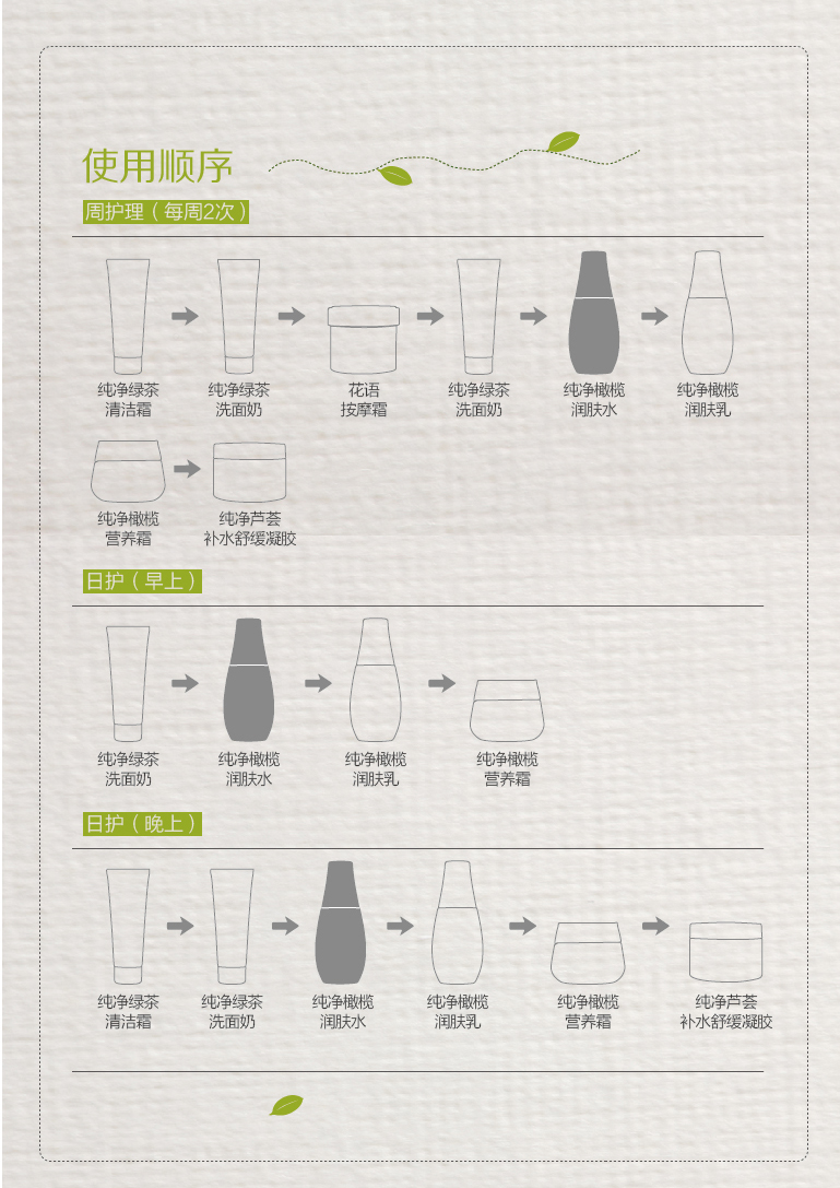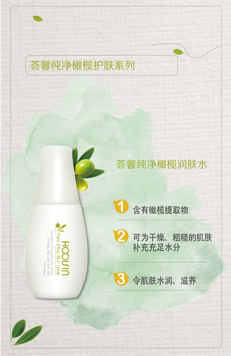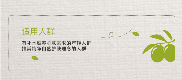 含有橄欖提取物,可補充水分,潤養(yǎng)肌膚。