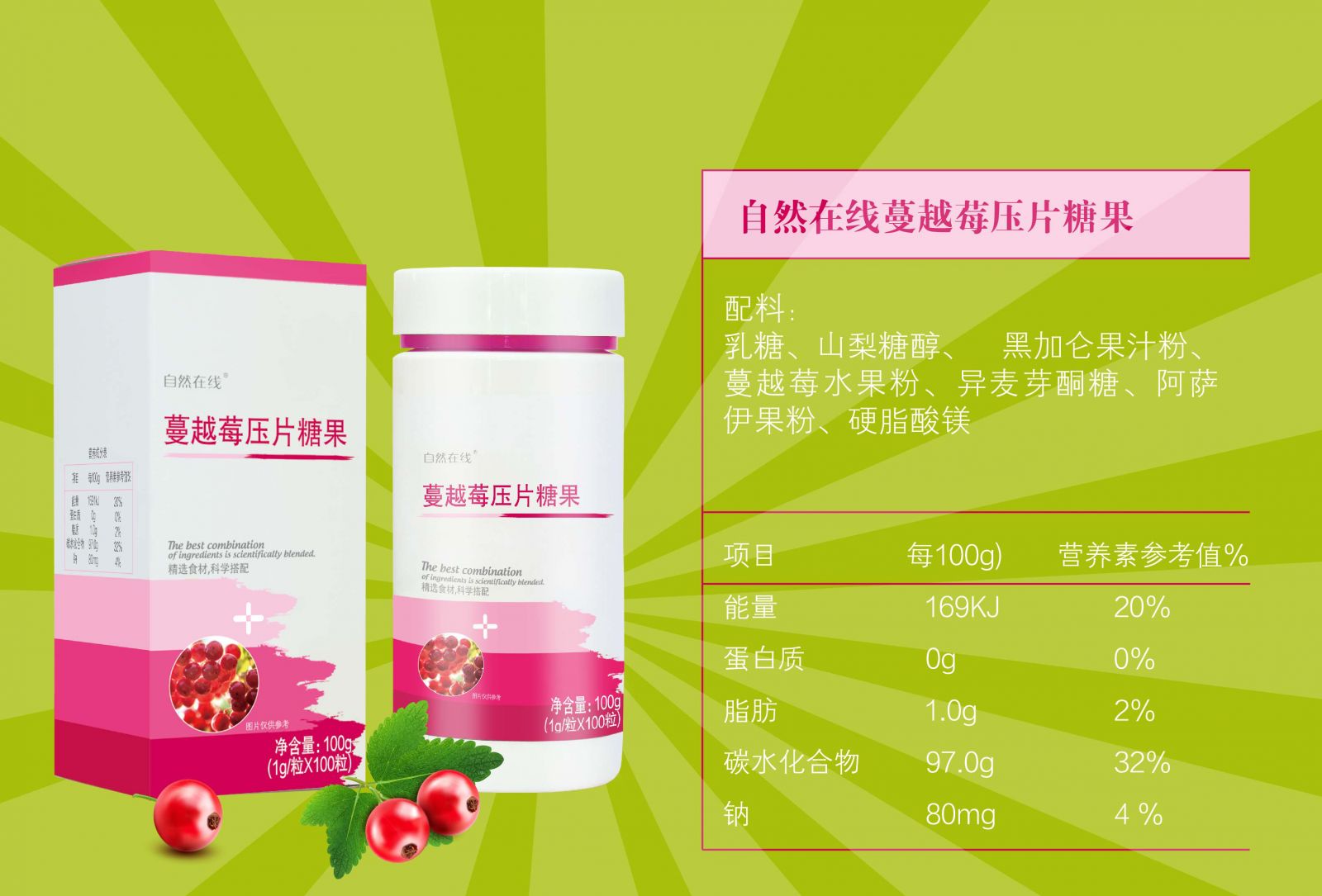 自然在線蔓越莓壓片糖果